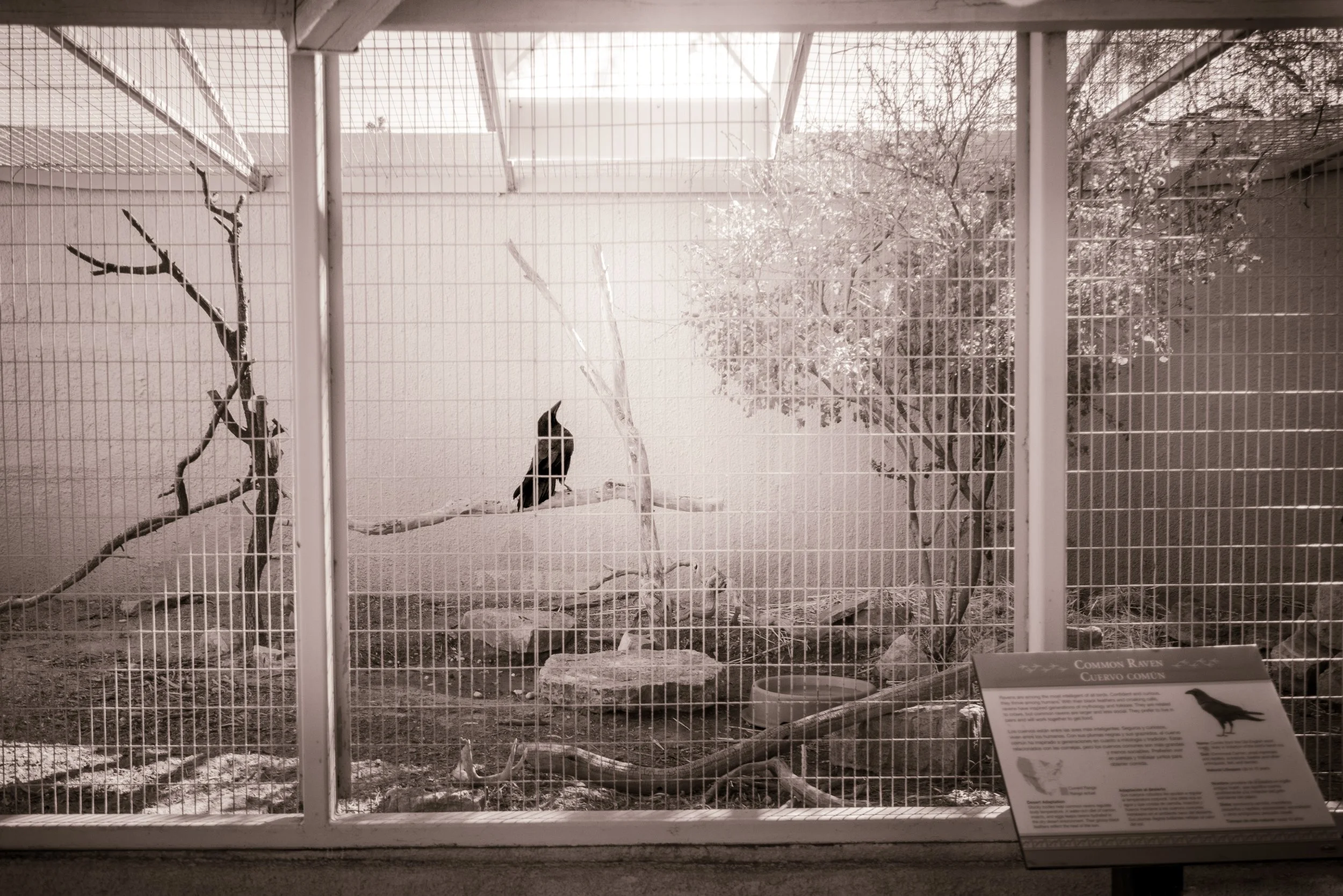 This Raven made me as happy as he made me sad as I sat with him for a few hours during my two-day Living Desert Zoo visit. If all the world had a beauty pageant, I could make an argument for this Raven—he’d have my vote, at least. Hobbled by a once-broken wing, he shifted and shrugged,clearly uncomfortable in his own body. I wonder if he knows that I know how he feels.